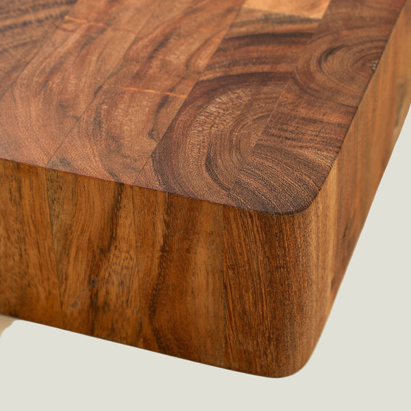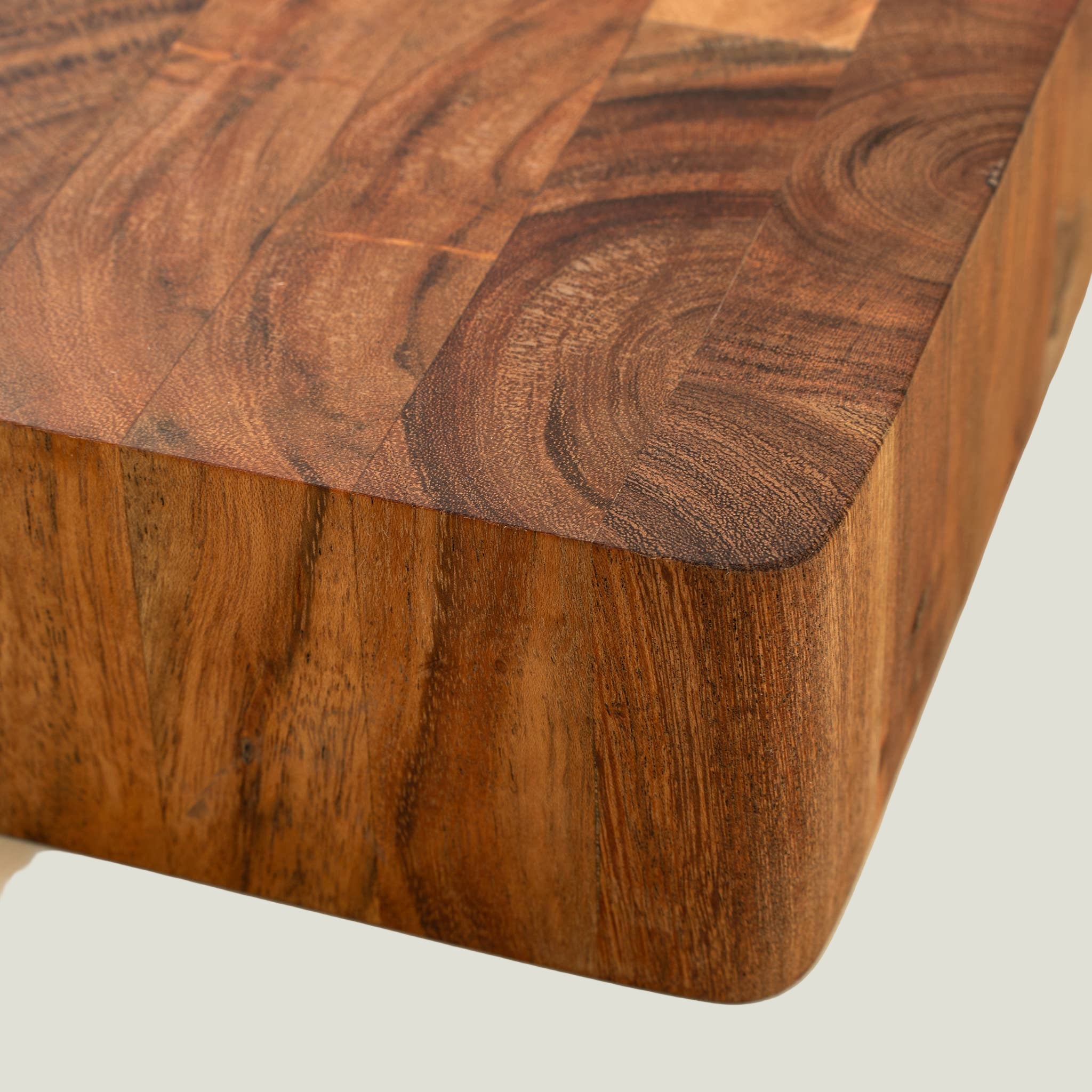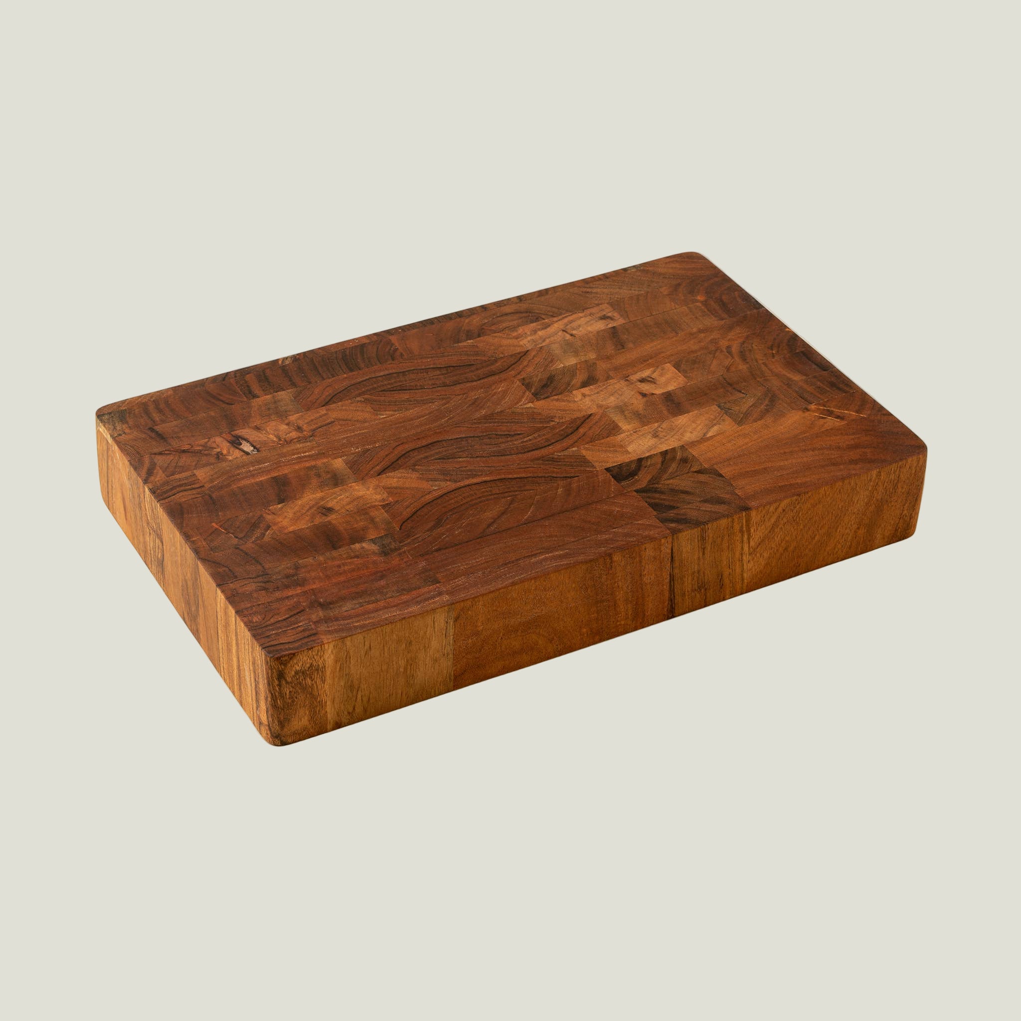 End Grain Butcher Block, Rectangular, A Statement Chopping Board for Elevated Everyday Prep Elevate your kitchen prep with the End Grain Butcher Block, a beautifully crafted essential that's as practical as it is sculptural. Made in India from 100% acacia wood, this luxuriously thick and weighty butcher block is built to handle serious chopping while doubling as a showpiece on your countertop.