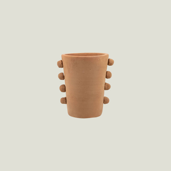 A warm, understated vessel for everyday arrangements. Made from 100% natural terracotta, the Osa Vase features hand-thrown terracotta beads along two sides—simple, sculptural details that give it a timeless, crafted feel. The earthy tone pairs effortlessly with fresh stems, dried flowers, or branches, letting your arrangement take center stage.