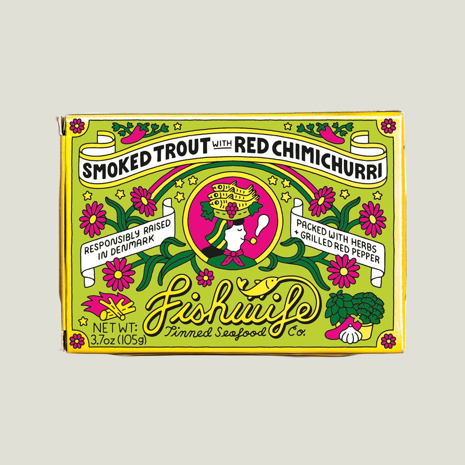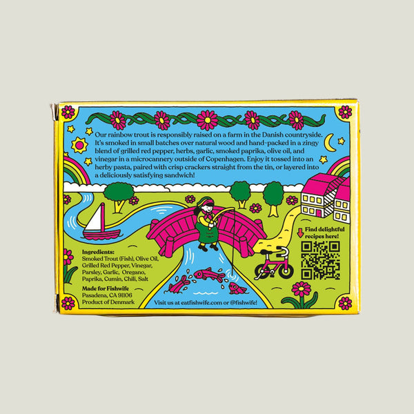 Meet your new pantry crush. A buttery, flaky Smoked Rainbow Trout marinated in a vibrant red chimichurri. Think tangy grilled red pepper, fresh herbs, savory garlic, and a bright splash of vinegar. The result is a tin that is zippy, herby, and impossible to stop eating.
