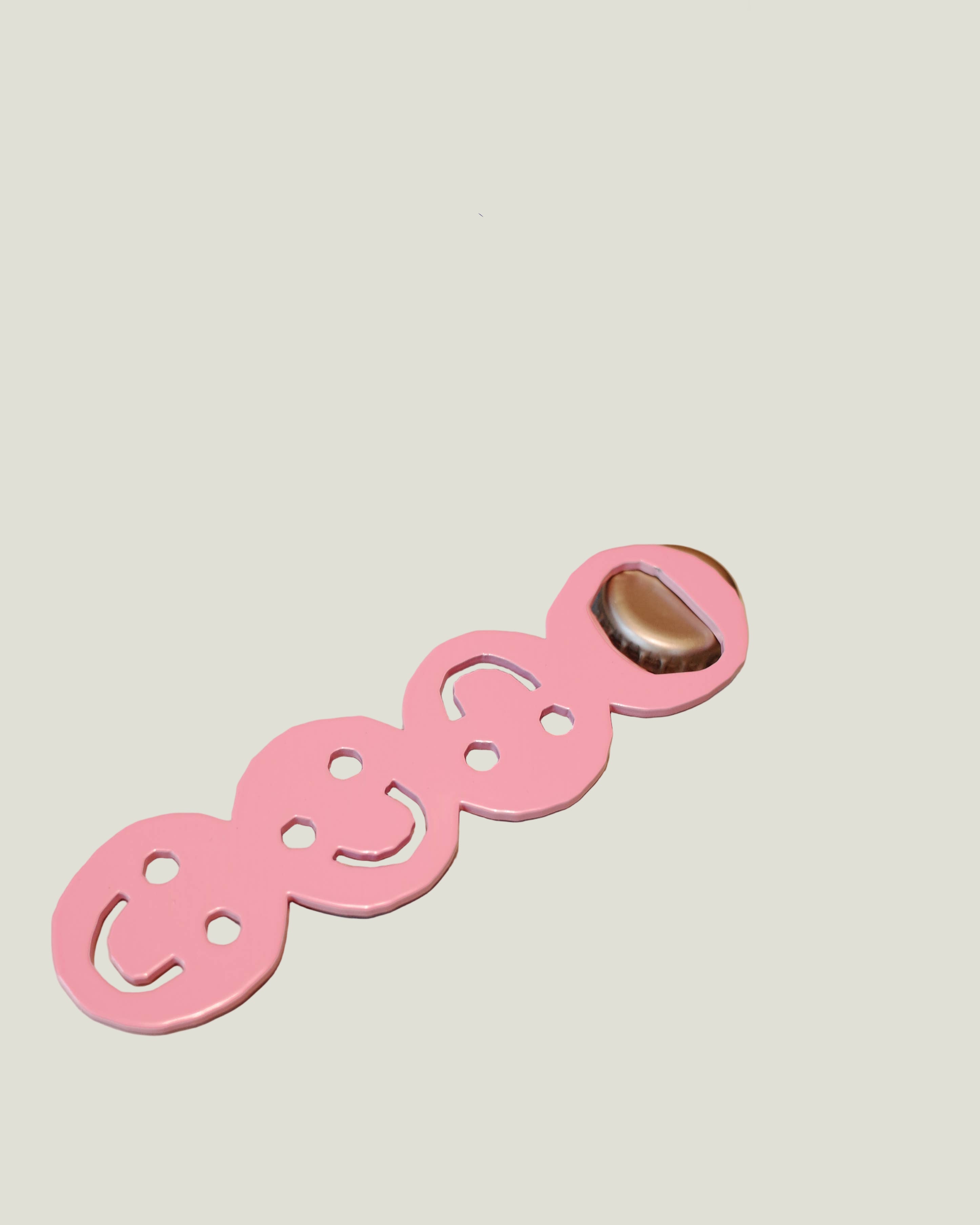 Cheersie bottle opener of powder coated steel in Pink Very happy bottle opener made from powder coated 2,5 mm steel