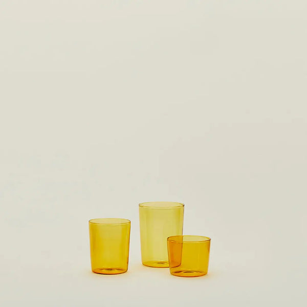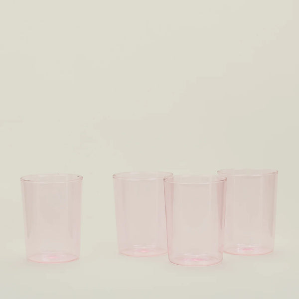 This elegant set of four glassware pieces is perfect for serving dinner water or highball cocktails. Showcasing a palette of colors with a gentle nod to retro style, each glass is made from sturdy borosilicate glass with refined, contemporary lines.