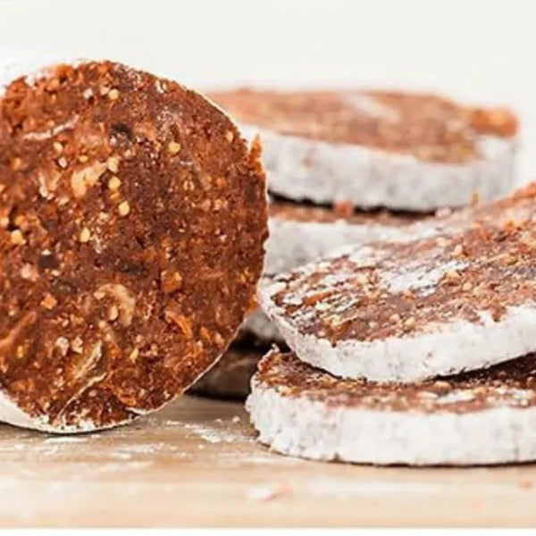 100% plant-based Fig Salamis, made from premium figs, black pepper and nuts. This healthy snack makes for the perfect cheese companion on your platter. It's GMO free and no added sugars. No refrigeration necessary.