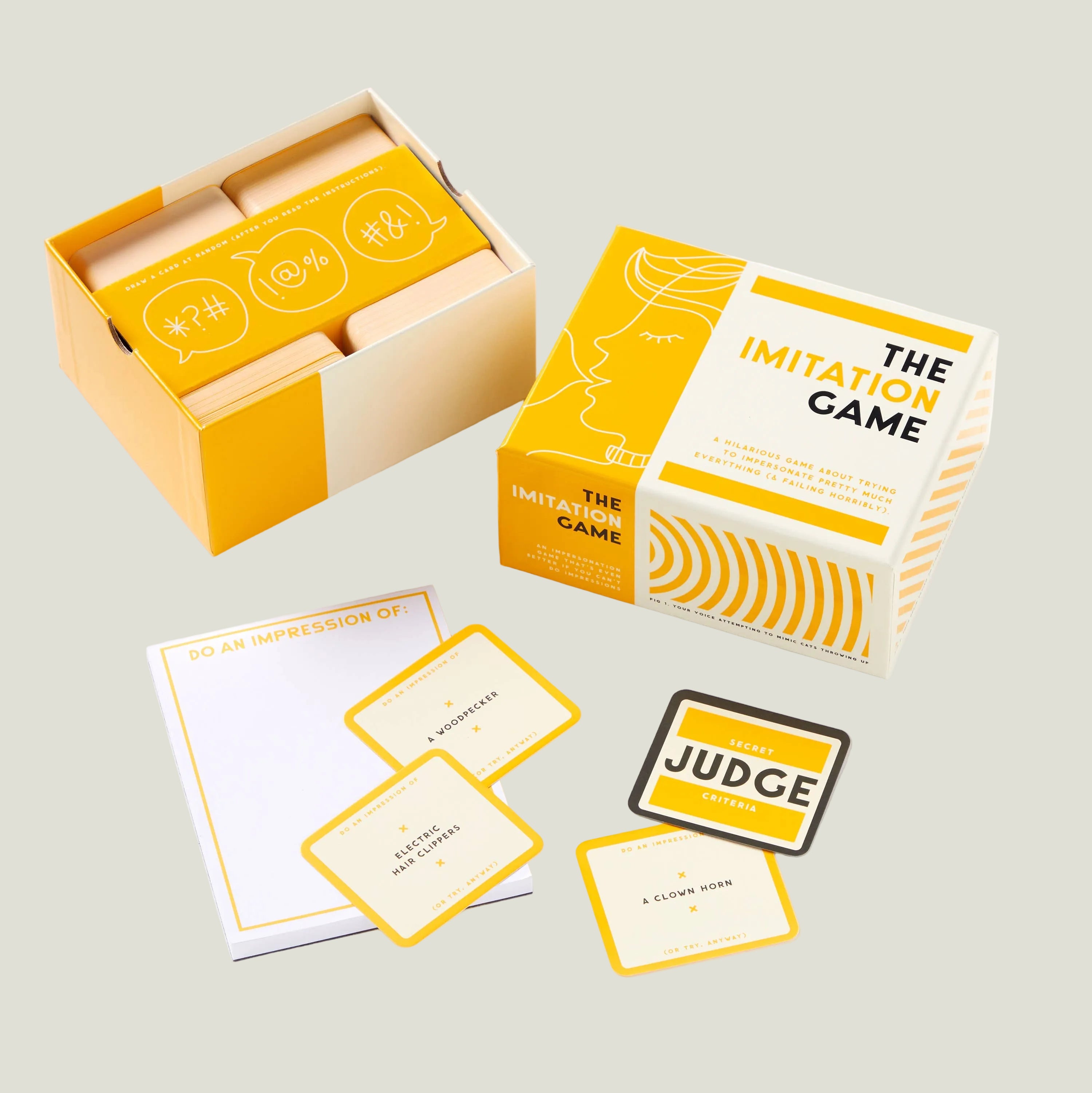 An impersonation game that’s somehow better when you’re bad at impressions. With 500+ prompts featuring iconic characters, animals, and objects, players compete by doing their best (or worst) imitations—everything from Kermit the Frog to a gumball machine.