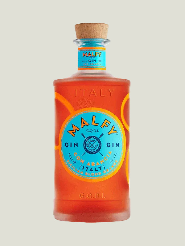 Malfy Gin Arancia is a vibrant, fruit-forward Italian gin flavored with Sicilian blood oranges and classic botanicals. Distilled in Moncalieri, Italy, it is characterized by its bright ruby-red color and bittersweet citrus profile.