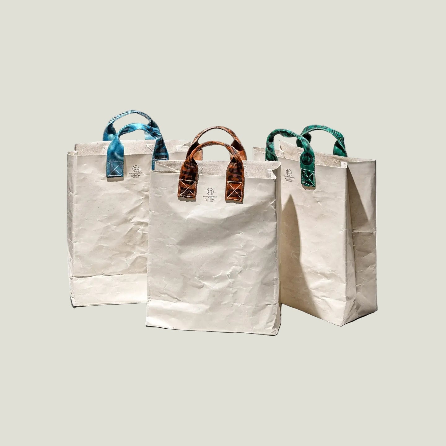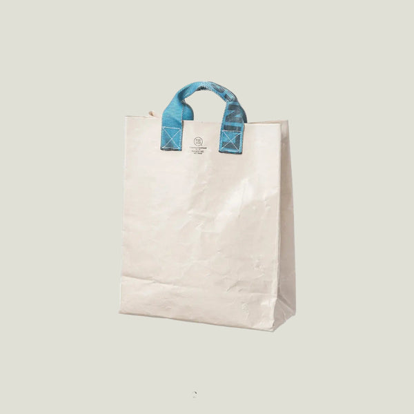 Handmade from recycled vintage canvas material, each tote carries the marks of its past, offering a truly unique, one-of-a-kind aesthetic. To enhance durability and longevity, the canvas is carefully laminated, creating a protective layer that reinforces the fabric while maintaining its raw, vintage charm. The handles are upcycled from cargo belt straps sourced in India that are then dyed. The sturdy handles add to the tote's industrial appeal, making it a reliable companion for work, travel, or everyday essentials.