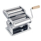 Fantes Aunt Gina's Pasta Machine with Double Pasta Cutter rolls homemade pasta sheets and cuts spaghetti or fettuccine noodles with consistent results. Its roller adjusts to roll uniform pasta dough into 9 thicknesses (0.5 to 3-millimeters) with the turn of a dial. Easily roll 150-millimeter-wide sheets of pasta dough for ravioli or handcut shapes, or slide on the double pasta cutter attachment to cut spaghetti and fettuccine noodles. The extra-wide clamp secures the pasta machine to work surfaces from 1 to 2.375-inch thick, while the wooden handle offers a comfortable grip during use. Make pasta to cook immediately or ahead of time for future use.