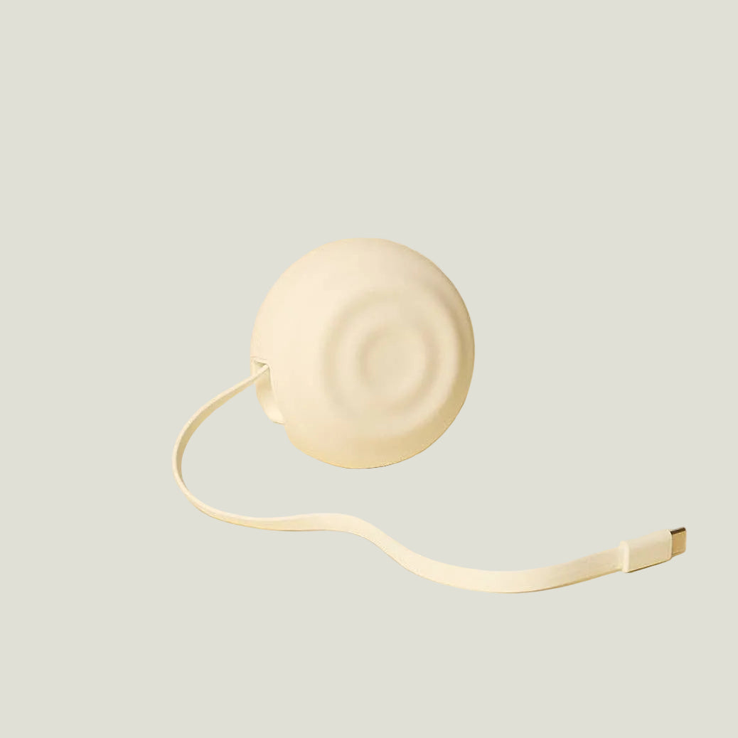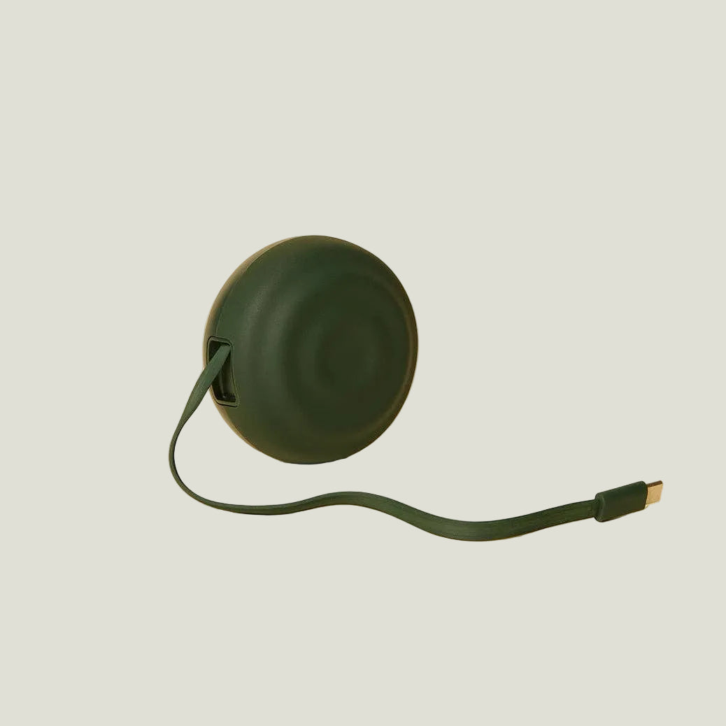 This 35 Watt cord-retractable charger is made of silicone and post-consumer plastic, with a button-enabled cable retractor. Their rippled, soft exteriors are both texturally satisfying and sensibly durable, protecting 4 feet of USB-C cord. Perfect for USB-C compatible phones, earbuds, tablets, wireless speakers & more, and a favorite of travelers, content creators & interior designers.