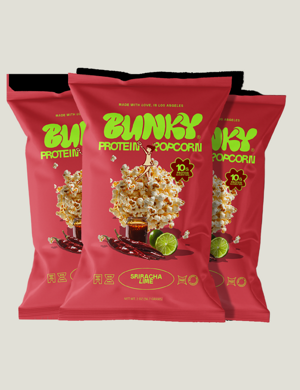 Discover the protein -packed punch of BUNKY Popcorn. Air-popped to perfection and bursting with bold flavor, this small batch made popcorn delivers satisfaction in every bite. Made with premium ingredients like whey protein isolate and natural seasonings, 2.5oz bag (72g) is a smart, crave-worthy snack that’s a good source of fiber and lower in calories than traditional popcorn. Whether you’re refueling after a workout or just craving something bold and better-for-you, choose Sriracha Lime for flavor and function—all in one craveable bag.