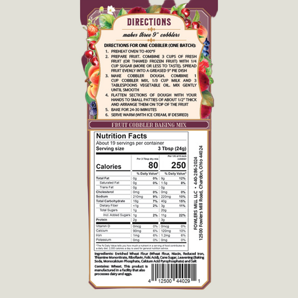 Enjoy a nostalgic classic with our old-fashioned Fruit Cobbler Mix! Add milk and vegetable oil, plus your favorite fruit.
