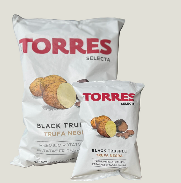 Imported from Spain, Torres Potato Chips are light and crispy with bold flavors. Potato chips with real black summer truffles. Light and crisp and yet intense and genuine flavor. Ideal for pairing with white wine, champagne or cava.