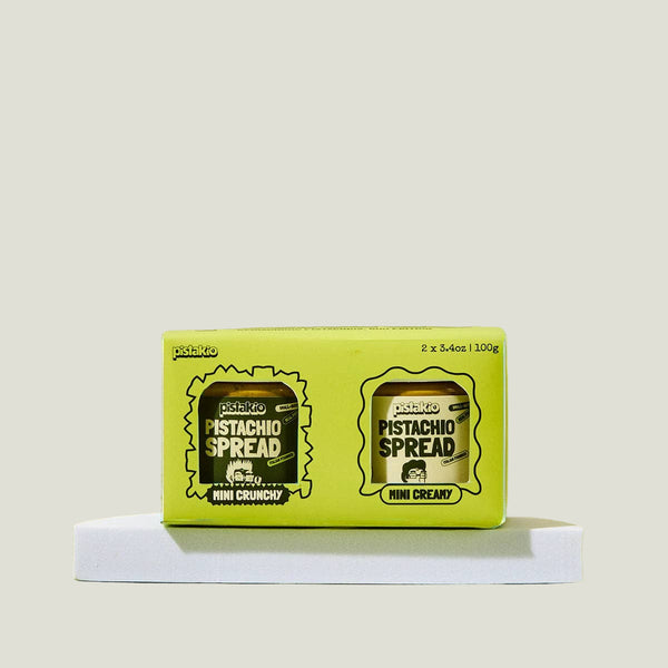 Now in an adorable lil’ 2-pack, perfect for the holidays! this limited-edition gift set includes the Creamy and Crunchy Pistakio Spreads in 3.4oz mini jars, tucked inside a festive little green gift box. they're perfect as a stocking stuffer, host gift, or a sweet way to introduce someone to their new pistachio obsession.