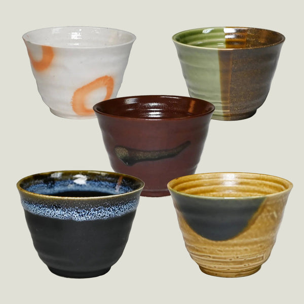 Made in Japan. Rustic earthy glaze; various colors.