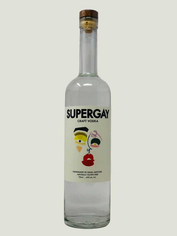 Supergay vodka is made from 100% organic, single origin corn. It's handcrafted in small batches and filtered 3 times through activated coconut charcoal to create a distinctively smooth and clean vodka that mixes perfectly in cocktails, and is equally delicious on the rocks.