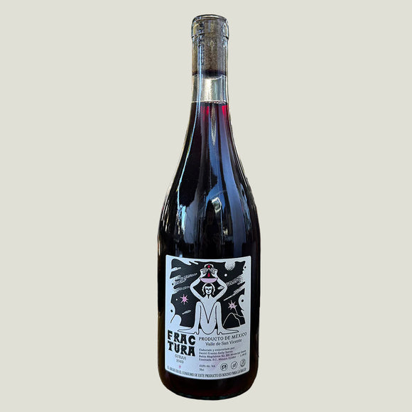 Black wine bottle with a pink label featuring a tiger design on a white background