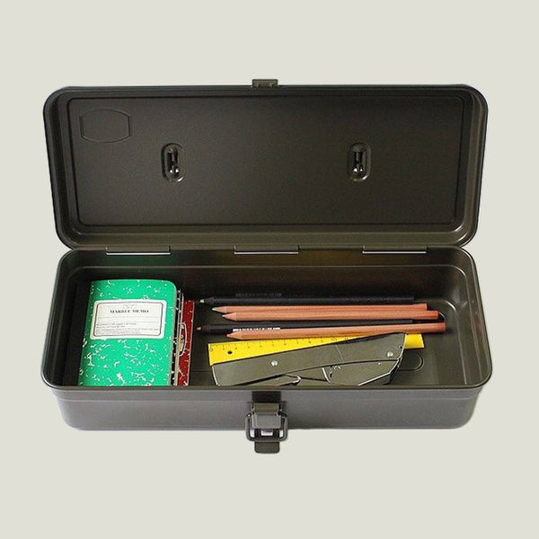 Stamped from a single piece of steel, this streamlined toolbox features a flat lid and a top extendable handle for portability and strength. With its seamless, watertight build and no sharp edges, it’s durable, safe, and endlessly versatile—perfect for tools, art supplies, cosmetics, and more.