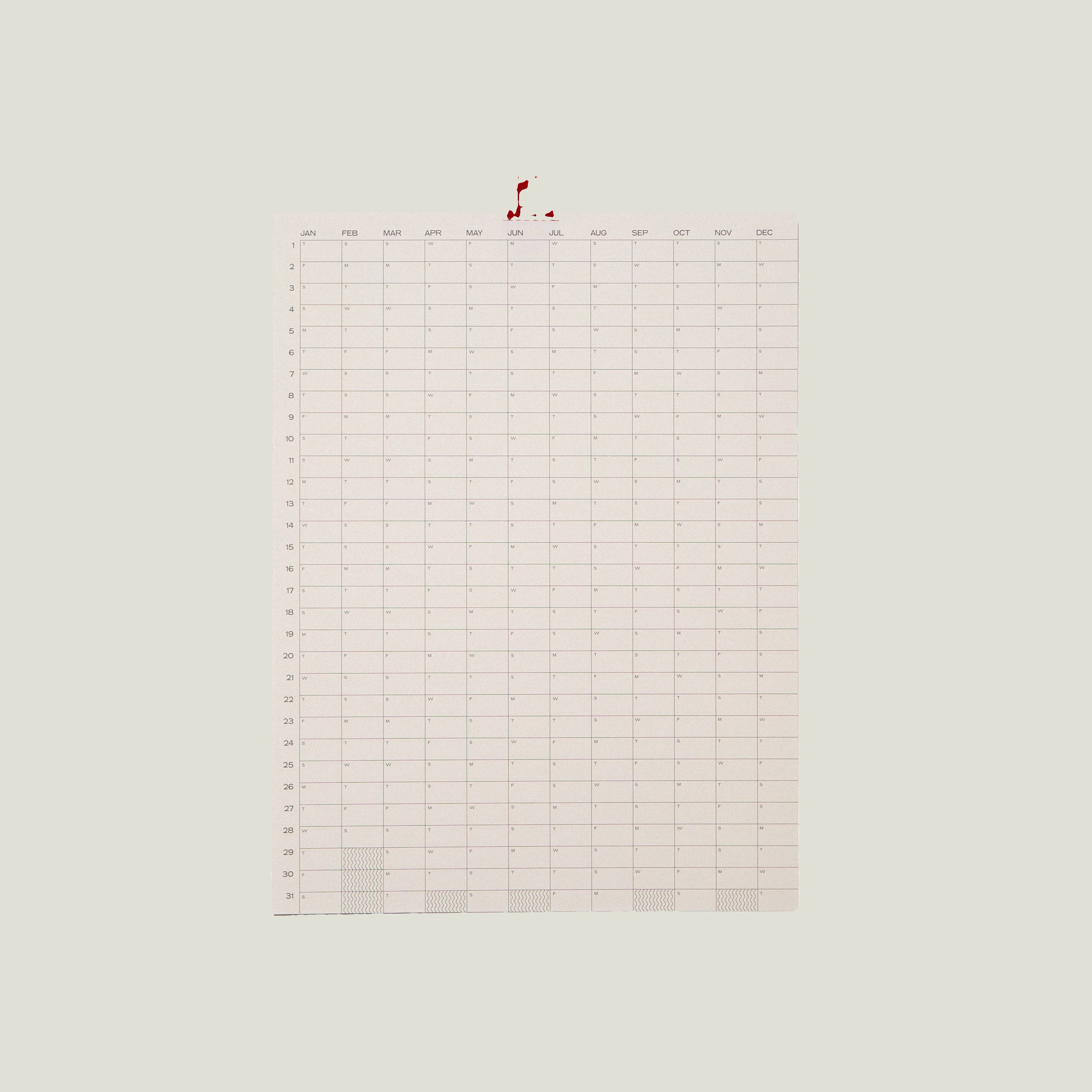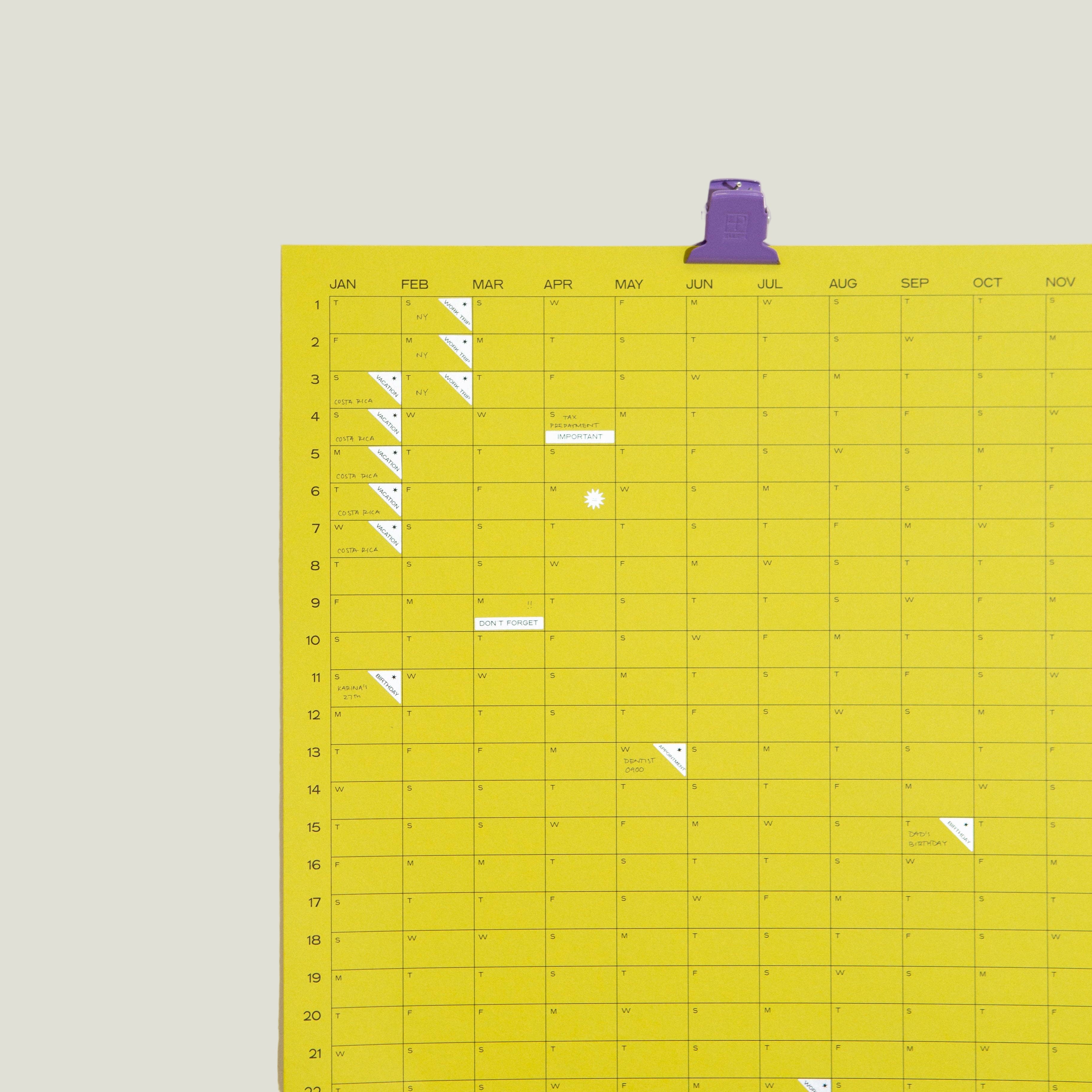 365 days at a glance. It's top-level organization to ensure that the whole year is visible and easy to manage. Hang it with a metal clip, washi tape, tacks, or magnetic poster hanger. Try it with the Chrome Calendar Stickers designed to fit perfectly in the boxes.