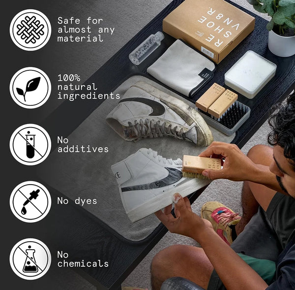 The Essential Kit is guaranteed to be your shoe's best friend, featuring the world's most effective shoe-cleaning solution and our signature brushes.
