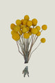 These Craspedia Sun Ball flowers were organically and sustainably grown on a farm and naturally dried without the use of any chemicals or dyes. They are beautiful enough to stand alone in a vase, hung up on the wall, or used for crafting. Bunches consist of about 20 stems (which is double the size of a normal wholesale bunch size of 10 stems). The length of the stems are between 12"-18". Shades of yellow and size of flowers may vary. Dried flowers are fragile so some minimal breaking may occur during the shipping process. Dried flowers will last several years with the proper care - keep out of water, humidity and direct sunlight for the best results.