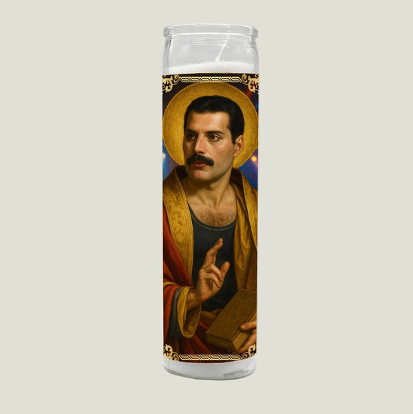 Saint Freddie Renaissance: Freddie Mercury inspired Renaissance-style art design; white candle