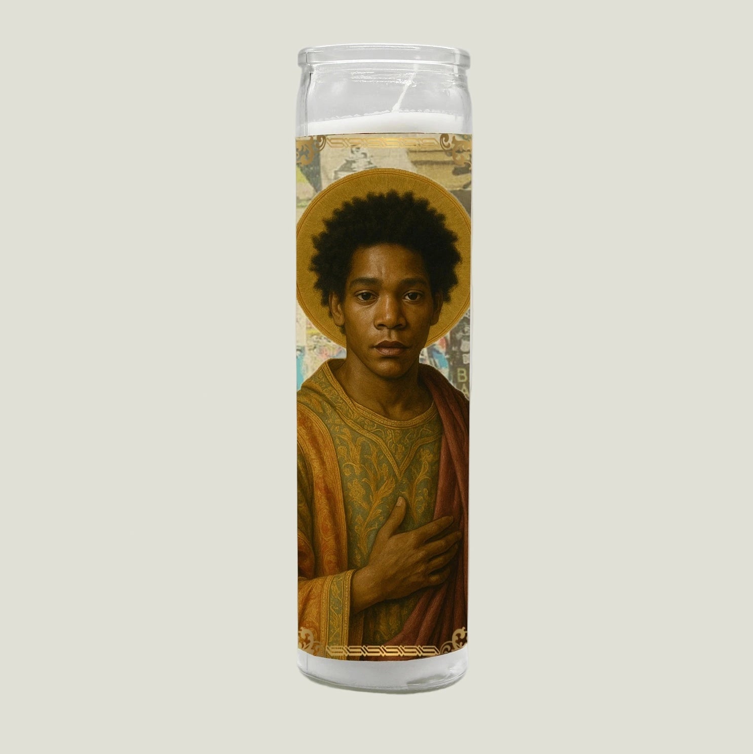 Saint Samo: Jean-Michel Basquiat inspired Renaissance-style art design; white candle.